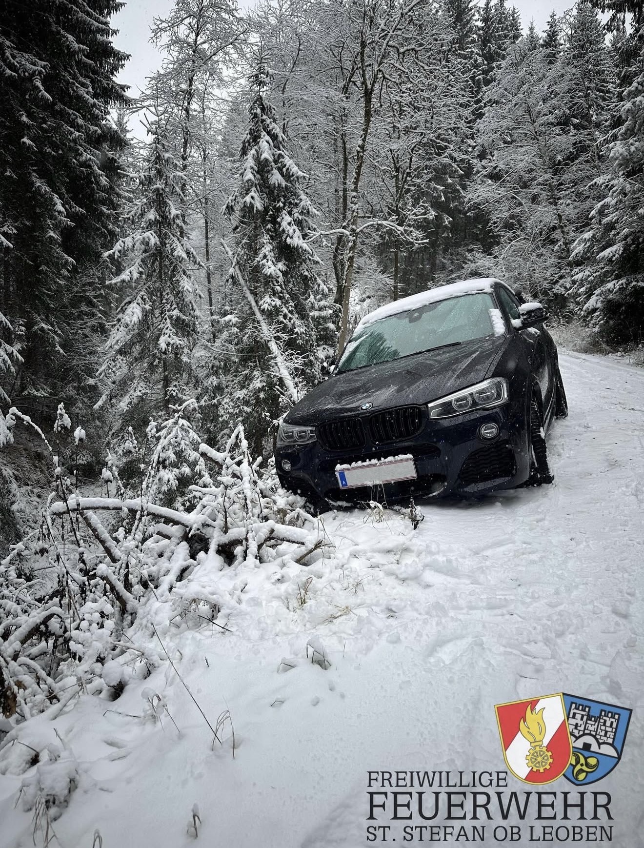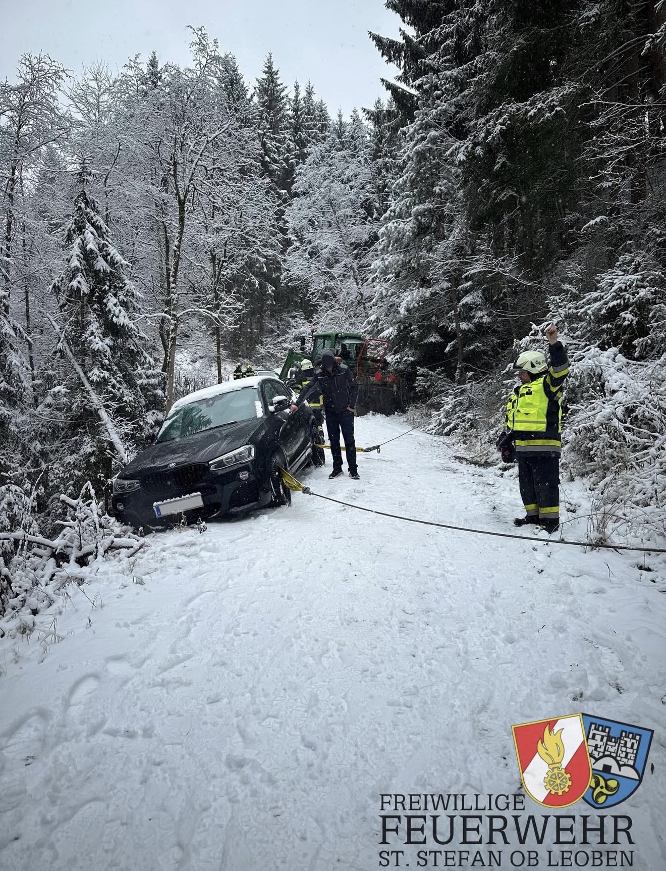 Die Bergung des Fahrzeugs erfolgte mittels Seilwinden sowie Umlenkrollen, wodurch der PKW kontrolliert und sicher zurück auf die Straße gezogen werden konnte. Verletzt wurde glücklicherweise niemand.